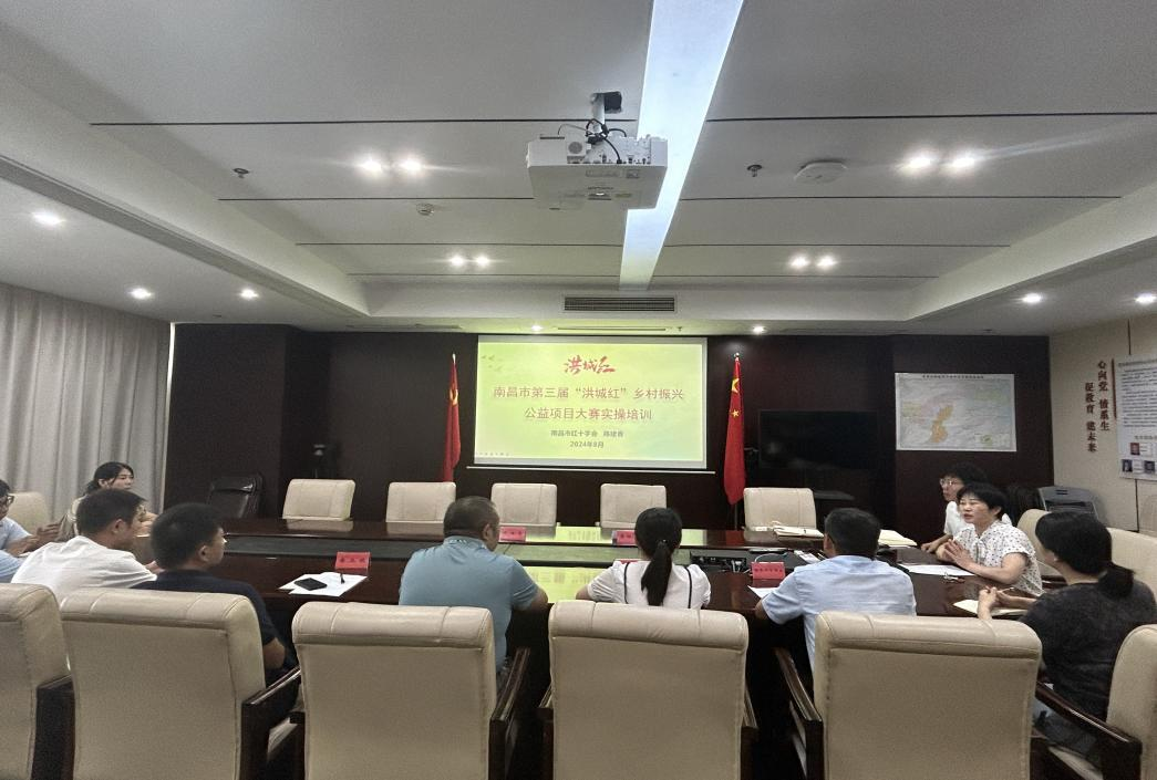 8月16日上午,南昌市第三届“洪城红”乡村振兴公益项目大赛(高新区)专场培训会在高新区管委会713会议室召开。市红十字会秘书长、秘书科科长陈建香受邀作项目专题培训;区社会发展局、区农工科相关负责人以及各乡镇(管理处)负责大赛事宜分管领导、参赛项目负责人等10余人参加会议。