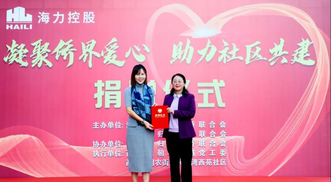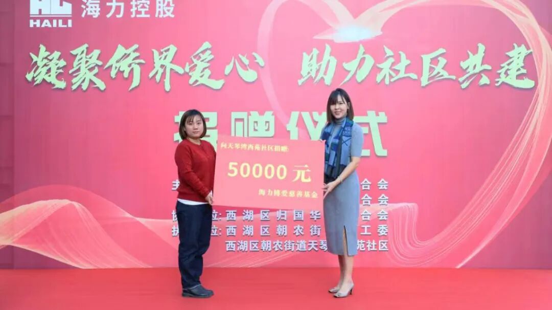 捐赠仪式上,省侨联兼职副主席、海力控股集团董事长、市红十字基金会副理事长卜莉莉捐资5万元助力社区改善办公条件,提升社区信息化水平,增强为民服务履职能力。