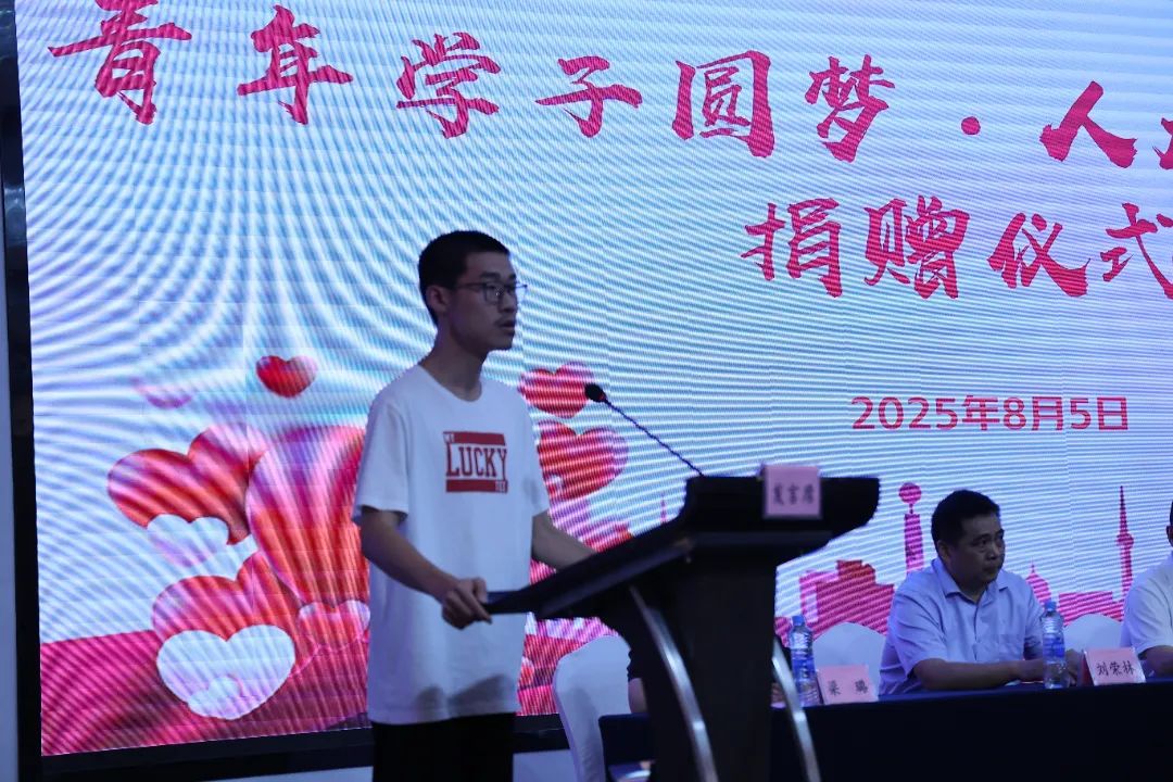 受助学生代表周立杨向人大代表、老师及爱心人士致谢,分享自身因国家资助政策、学校以及爱心人士的支持和帮助,得以在家庭遭遇困境时能继续求学,高考取得优异成绩考入理想大学的经历,表达他将心怀感恩、赓续奋斗、传递温暖的决心。