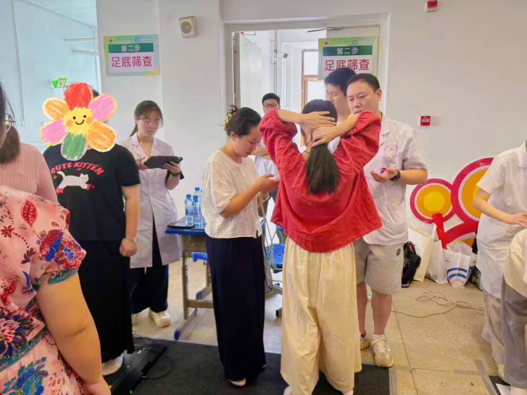 除了学生群体,筛查团队还特别为校区100余名教职工提供了脊柱与足底健康检查服务。老师们平日里伏案工作、站立授课,长期保持固定姿势易引发颈肩腰腿痛等问题。医护人员针对老师们的职业特点,进行了针对性的检查与健康指导,让辛勤耕耘的园丁们也能关注自身健康。