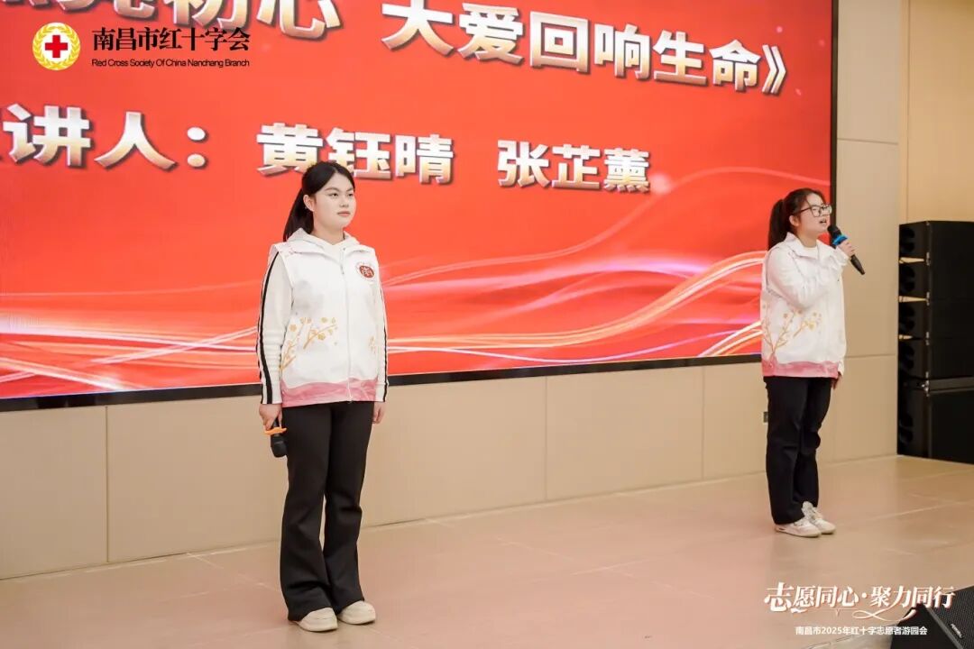 在故事宣讲环节,市南医精诚红十字志愿者张芷薰、黄钰晴带来的《志愿点亮初心,青春书写担当》,展现了新时代志愿者将“小我”融入“大我”的蓬勃朝气;南昌县志愿者沈继奋分享的《每一次志愿服务都是一次美好回忆》,用朴实的语言讲述了自己身虽残疾,但自强不息,尽己所能帮助他人的志愿服务经历,引起了广泛共鸣;在志愿者兰晶的娓娓道来中,在场志愿者再次感受到第39届“南丁格尔奖章”获得者章金媛跨越半个世纪的坚守与大爱。