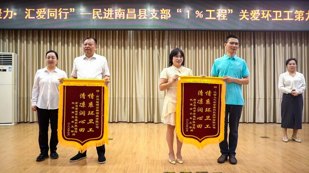 为弘扬人道、博爱、奉献的红十字精神,向在高温下默默奉献的环卫工人表达敬意和关怀。7月25日,由民进南昌县支部主办,南昌县城市管理和执法局和南昌市红十字基金会协办的“同心聚力·汇爱同行”——“1%工程”关爱环卫工第九届公益行活动在南昌县文化会展中心顺利举行。民进市委会专职副主委邹萍莉,市红十字会党组成员、专职副会长梁璐,县委常委、统战部部长皮钧,县政协副主席龚芦花,县城管执法局党组书记、局长刘林等领导及捐赠方代表应邀出席。