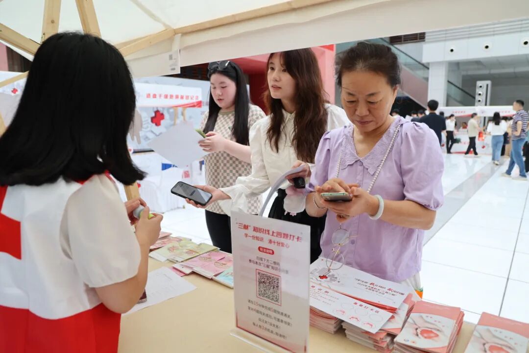 活动现场采取“公益集市”的形式,设置了“三献”知识问答、无偿献血采集、造血干细胞宣传登记入库、遗体器官捐献宣传登记、应急救护技能体验、公益爱心义卖等多个互动区域,参加者可以通过参与各项活动集得印章并获得爱心回礼,提升了本次活动的参与性、互动性和趣味性。市直机关单位的党员干部职工纷纷来到活动现场,积极参与各项互动体验,大家主动了解“三献”知识,学习心肺复苏术与海姆立克急救法,挽袖献血接力生命,参与公益项目爱心捐赠……现场气氛热烈,爱心涌动。